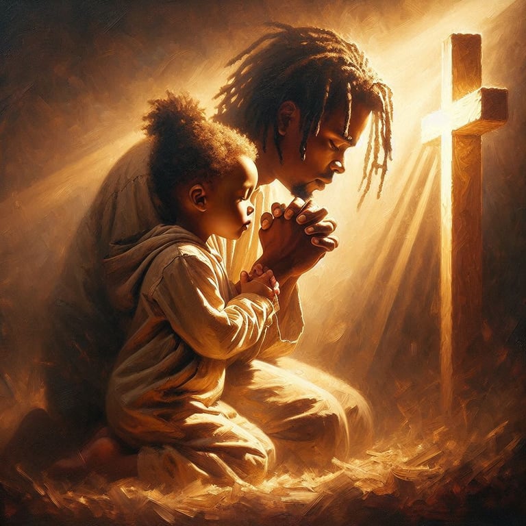This beautifully crafted canvas print features a touching scene of family prayer, illuminated by rays of light next to a glowing cross. Perfect for adding warmth, inspiration, and faith to your living space, this piece makes a meaningful gift for loved ones or a cherished addition to your home décor.